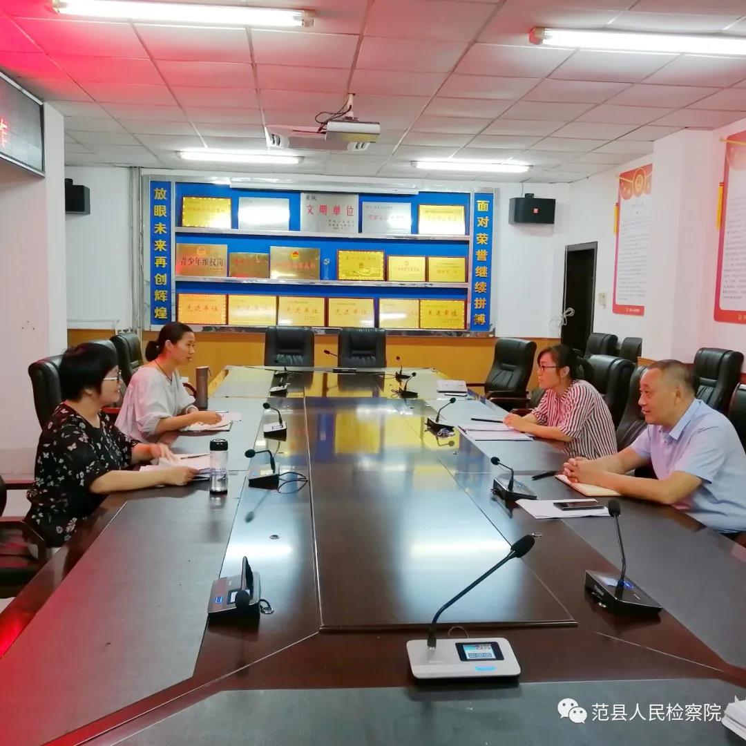 2020年8月11日,濮阳市第九检察部主任马莲、副主任袁纪敏到范县人民检察院调研指导控申工作。范县人民检察院党组副书记、副检察长刘庆斌,第三检察部副主任石素娟、书记员姜改苹参加了此次座谈会。