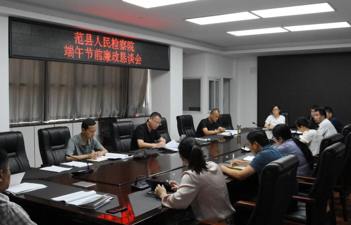 为加强端午节期间的党风廉政建设,切实提升干警廉洁文明过节意识,6月21日上午,范县人民检察院召开端午节廉政恳谈会。党组书记、检察长于爱江出席并讲话,院党组成员及全体中层正职以上人员参加会议。