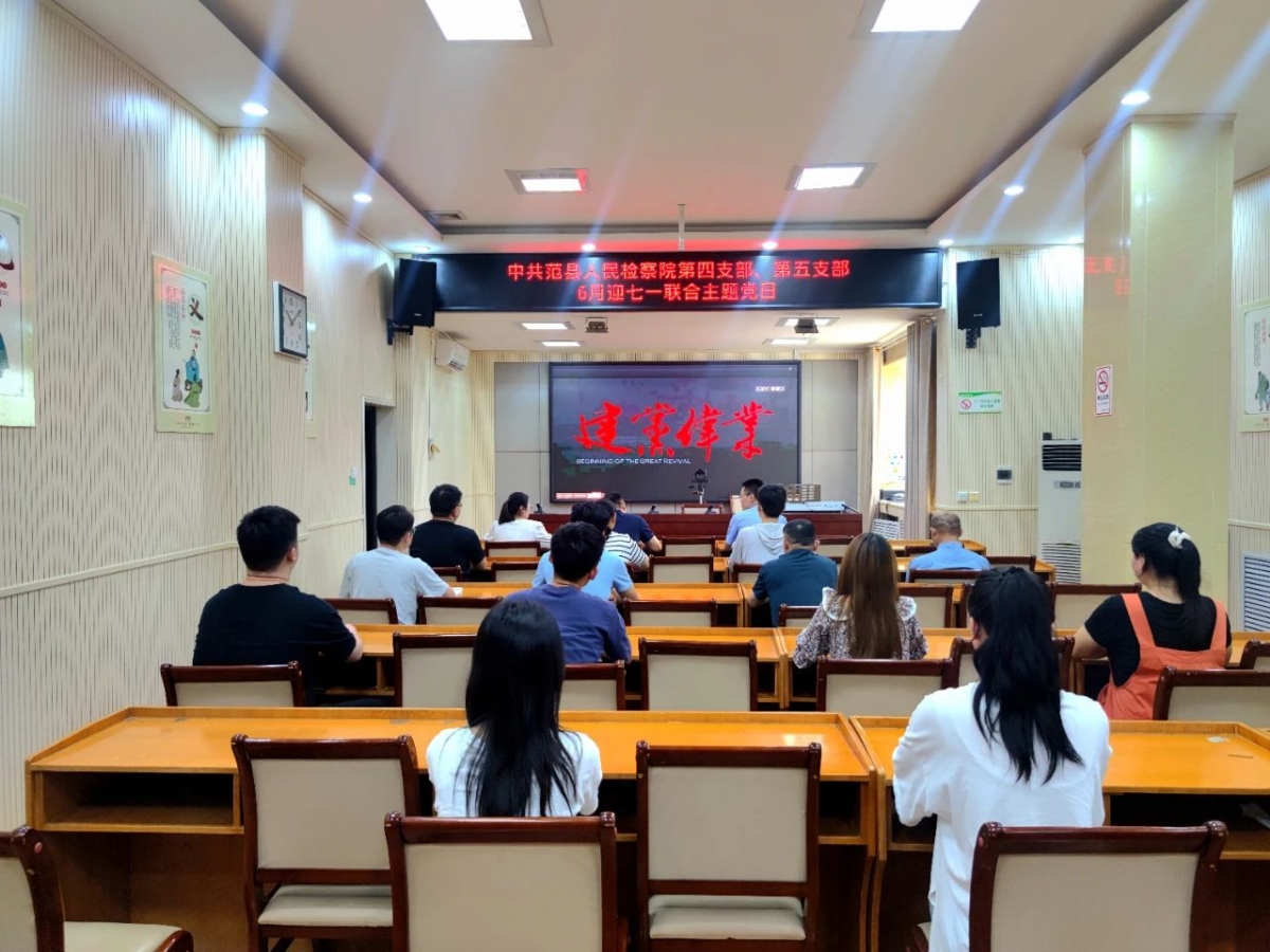 为庆祝中国共产党成立102周年,6月29日上午,中共范县人民检察院第四支部、第五支部联合开展迎“七一”主题党日活动,组织党员、预备党员、入党积极分子、团员观看电影《建党伟业》,缅怀革命先辈,赓续红色血脉。