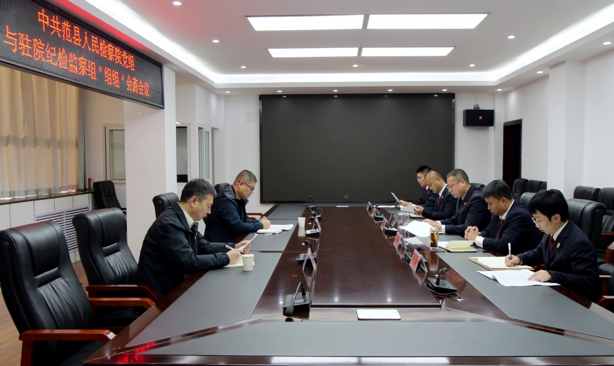 11月29日,范县人民检察院党组与驻院纪检监察组围绕群众身边不正之风和腐败问题集中整治工作召开专题会商会议。县检察院党组书记、检察长于爱江主持会议并讲话,县检察院党组成员、驻院纪检监察组全体人员参加会议。